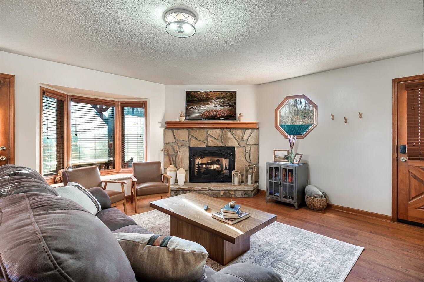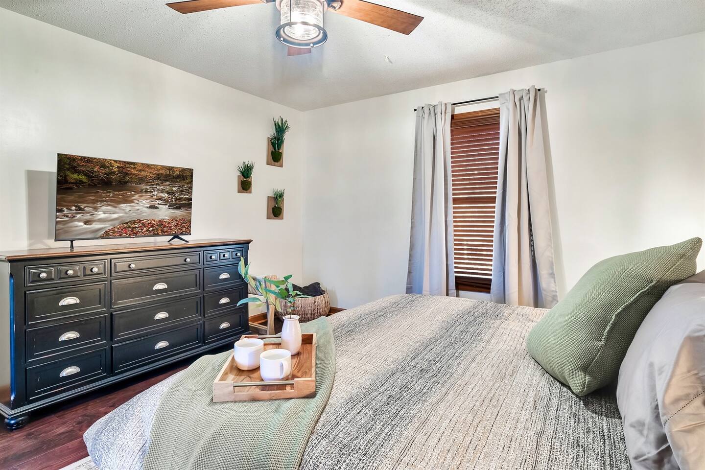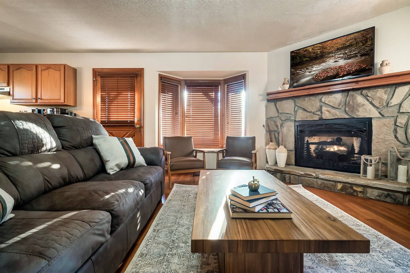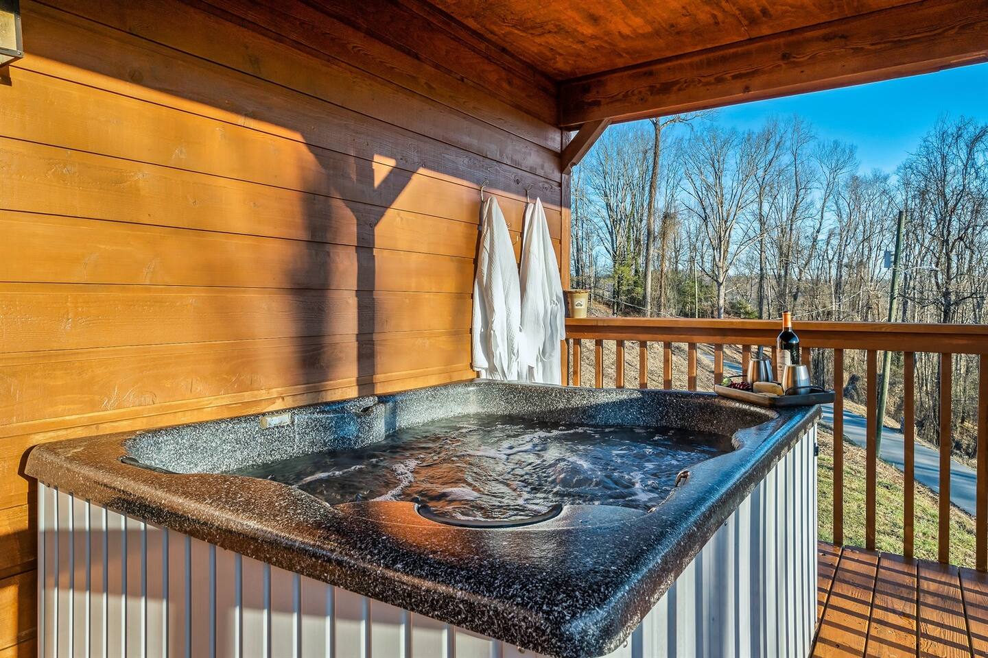 Our cabin is located just minutes from downtown Gatlinburg and the entrance to the Great Smoky Mountains National Park. This 880sqft cabin is perfect for a couples getaway or honeymoon in the wilderness. If you have a couple of little ones, they’re welcome as well! The Kitchen: ✔️Fully equipped kitchen with an electric stove, dishwasher, fridge, microwave, and all the necessary equipment for cooking. ✔️Fully stocked coffee bar! We provide ground coffee, whole bean coffee, K-cups, Nespresso pods, coffee filters, flavored syrup, and coffee filters. ✔️ Things we provide: Salt, pepper, various spices, oil, coffee, coffee filters, paper towels, dish soap, hand soap, and dishwasher pods. ❌ Things we DON’T provide: Foil, ziploc bags, charcoal The Living Room: ✔️Enjoy relaxing in the living room sipping on a delicious cup of coffee or a well-deserved glass of wine. ✔️Enjoy sitting in front of the cozy gas fireplace. (Fireplace is turned off from April 1st to November 1st). ✔️Play an assortment of board games or enjoy the multicade with a friend. ✔️Watch some shows on the 50” Roku Smart TV (remember to bring your own passwords). Deck: ✔️Outside the living room, you’ll find a wrap-around deck with a hot tub and outdoor seating. ✔️Enjoy the beautiful outdoors while soaking in your private hot tub or indulging in a home-cooked meal while taking in the mountain views. ✔️Take some time to relax and enjoy the outdoors while playing some outdoor games in the yard! The Bedroom: ✔️Just off the living room you’ll find the master bedroom with a king-sized bed. ✔️Roku smart TV. ✔️En suite master bathroom with a jetted tub to soak away your worries. The Bathrooms: ✔️Relax, unwind, and enjoy yourself! Take a dip in our jetted jacuzzi tub ✔️Cuddle up with one of our cozy bathrobes. These plush robes are perfect for lounging around the hot tub too - although please don’t take them home with you! ✔️All towels and necessary toiletries such as body wash, shampoo & conditioner will be provided so you can just sit back and relax.